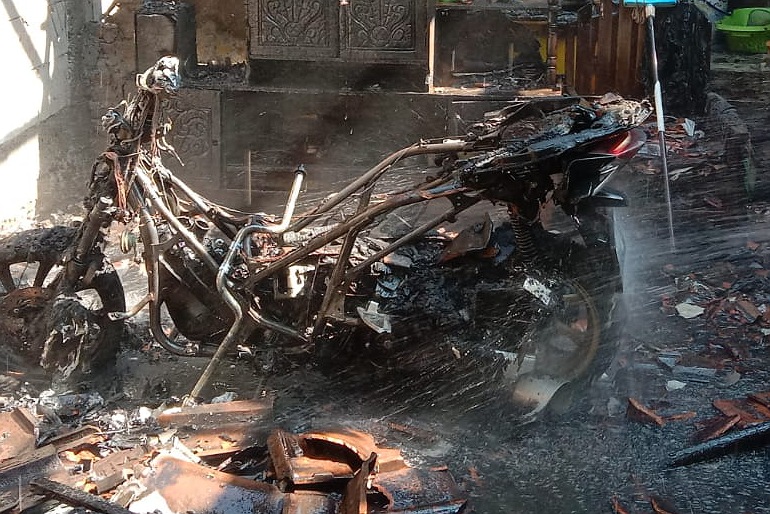 “Pada saat memindahkan bensin itu, seketika ada percikan api yang disebabkan konsleting listrik dari lampu kamar mandi dan menyambar motor yang berada di dalam ruangan,api langsung membakar barang – barang yang berada didalam rumah,karena panik ada warga melaporkan kejadian tersebut ke Damkar Comal, petugas yang sedang piketpun langsung menuju ke lokasi kebakaran,” pungkasnya.