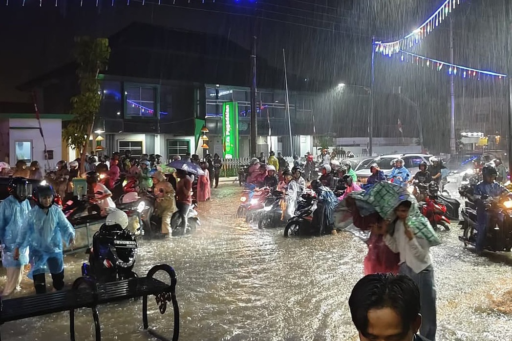Terpantau, Banyak pengendara terutama sepeda motor terjebak banjir, karena tingginya air yang menggenangi jalan jalan protokol, sehingga menyebabkan mesin kendaraan mati, terpaksa mereka menuntun kendaraanya ekstra hati-hati