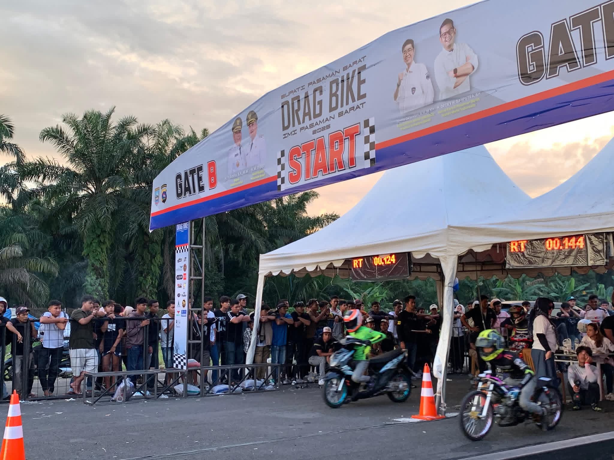 INformasinasional.com-Pasaman Barat–Event Drag Bike IMI Pasaman Barat 2025 yang memperebutkan Piala Bupati Pasaman Barat sukses digelar di sirkuit non permanen Bandara Pusako Anak Nagari, Minggu (2/11/2025). Kegiatan otomotif bergengsi tersebut diikuti oleh lebih dari seribu pembalap dari berbagai daerah di Pulau Sumatra dan Jawa.