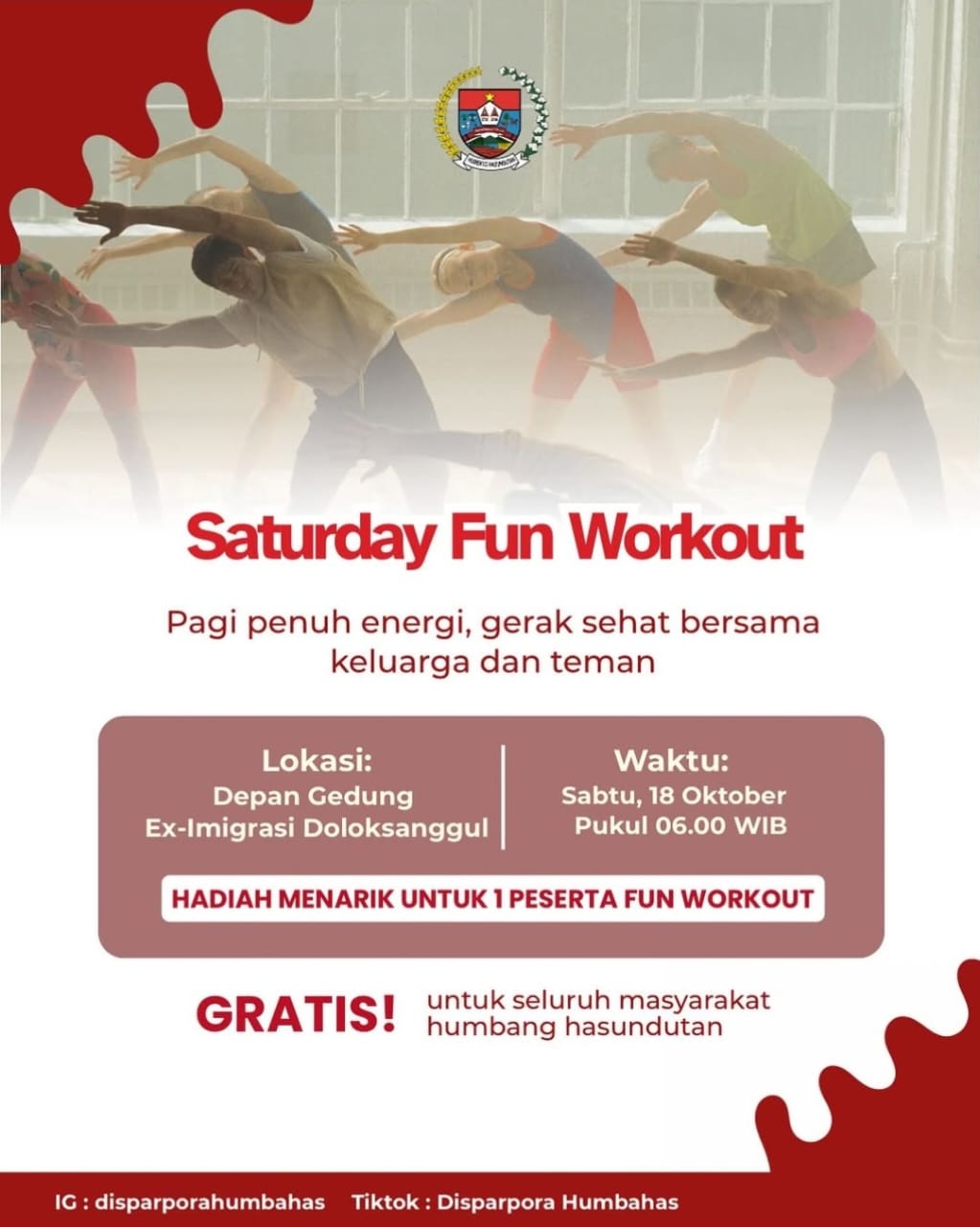 Doloksanggul bersiap berdenyut lebih pagi. Sabtu ini, bukan deru mesin kendaraan yang membangunkan kota, melainkan tawa dan hentakan langkah warga Humbang Hasundutan yang diajak melepas penat lewat kegiatan “Saturday Fun Workout”, sebuah gagasan segar dari Dinas Pariwisata, Pemuda dan Olahraga (Disparpora) Humbahas.