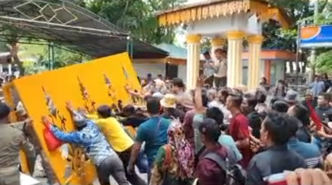 Aksi yang semula berlangsung tertib berubah tegang ketika massa memaksa masuk kekompleks Kantor Bupati Langkat. Gerbang utama akhirnya roboh ditengah dorongan massa yang bersikeras ingin bertemu langsung dengan Bupati Langkat, H Syah Afandin SH. Namun, keinginan tersebut tak terpenuhi lantaran kepala daerah itu disebut tengah menjalankan tugas dinas di Jakarta.