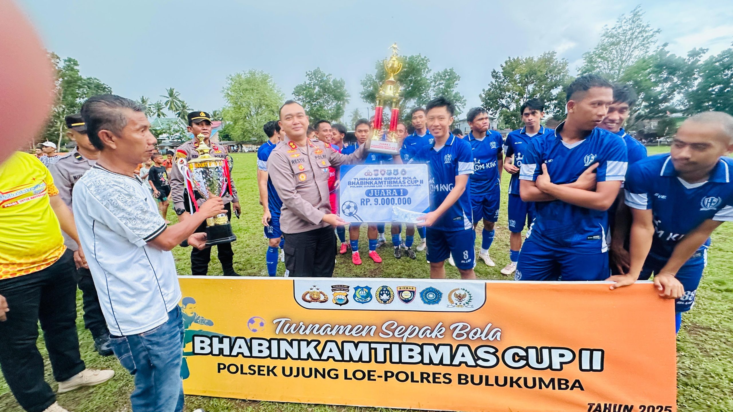 INformasinasional.com | Bulukumba — Turnamen Bhabinkamtibmas Cup II Polsek Ujung Loe resmi ditutup pada Sabtu (15/11/2025) setelah berlangsung selama satu bulan penuh, sejak 15 Oktober hingga 15 November 2025. Kompetisi sepak bola tahunan ini diikuti 24 tim dari Bulukumba dan Kabupaten Bantaeng.