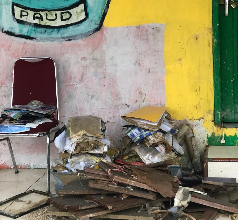 Warga memang mulai kembali dari pengungsian. Tapi pulang bukan berarti pulih. Rumah-rumah bekas rendaman harus dibersihkan, perabot disingkirkan, dan kehidupan disusun ulang dari nol. Disekolah, nasib serupa menunggu.