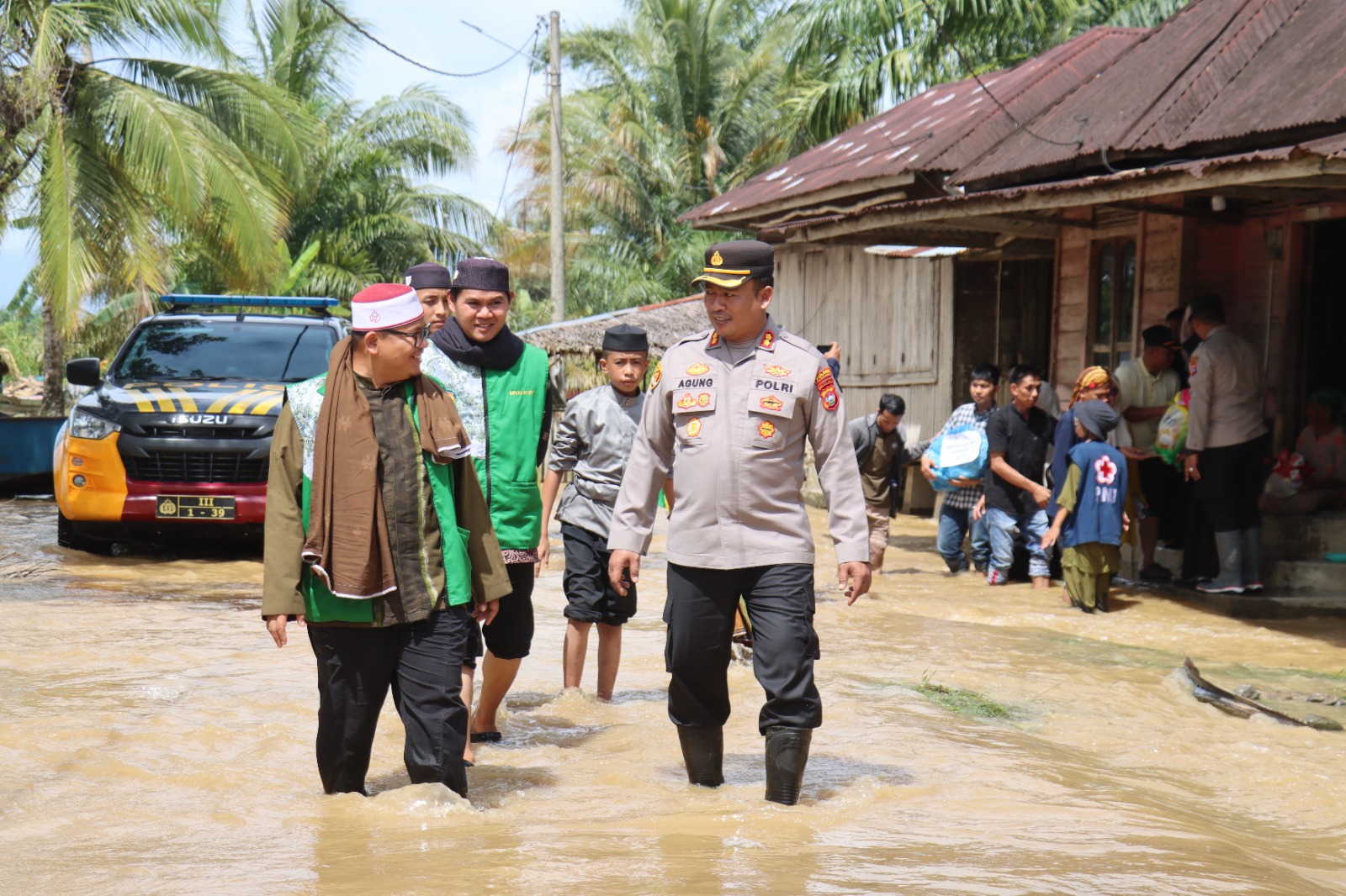 Dalam kegiatan tersebut, Kapolres terlihat melewati genangan air untuk menjangkau rumah-rumah warga di Kampung Nelayan, Jorong Pondok, Nagari Ranah Pasisie, Kecamatan Sasak Ranah Pasisie, Minggu (30/11/2025). Aksi ini menjadi bukti nyata kepedulian kepolisian terhadap masyarakat terdampak banjir didaerah pesisir.