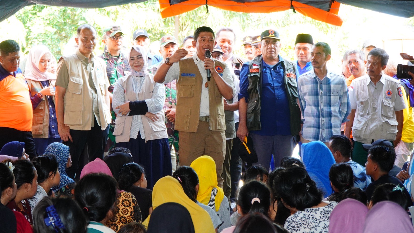 Suharyanto tanpa jarak menyapa satu per satu. Anak-anak menerima paket makanan ringan, sementara warga dewasa mendapat beras dan kebutuhan dasar. Lebih dari seremoni, Kepala BNPB tampak mencatat sendiri keluhan dan permintaan warga, mulai dari sanitasi darurat hingga stok logistik yang makin menipis.
