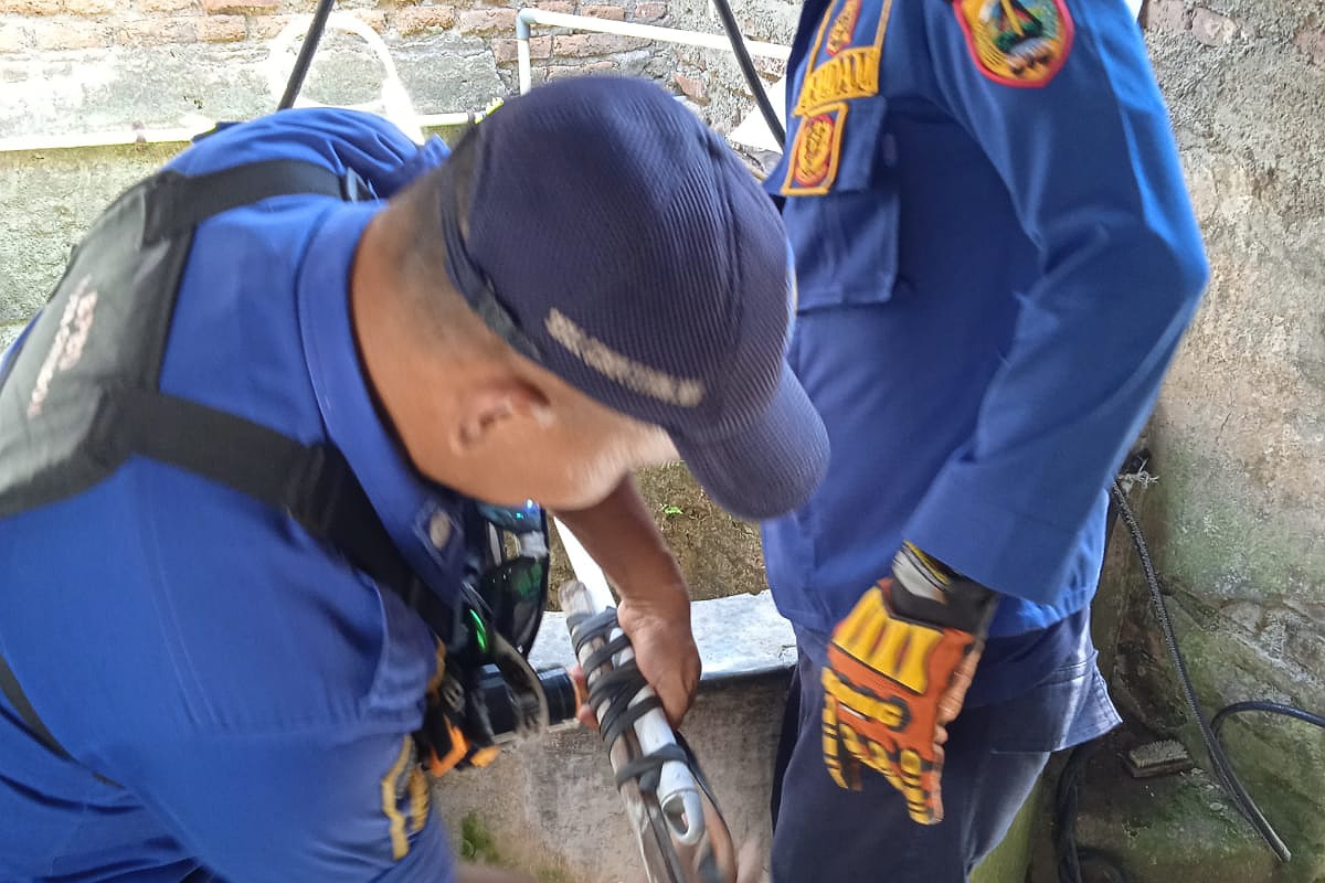Personel menuju kelokasi. Kemudian kita evakuasi dengan menggunakan beberapa galah /tongkat panjang kedalam sumur,” kata Wawan