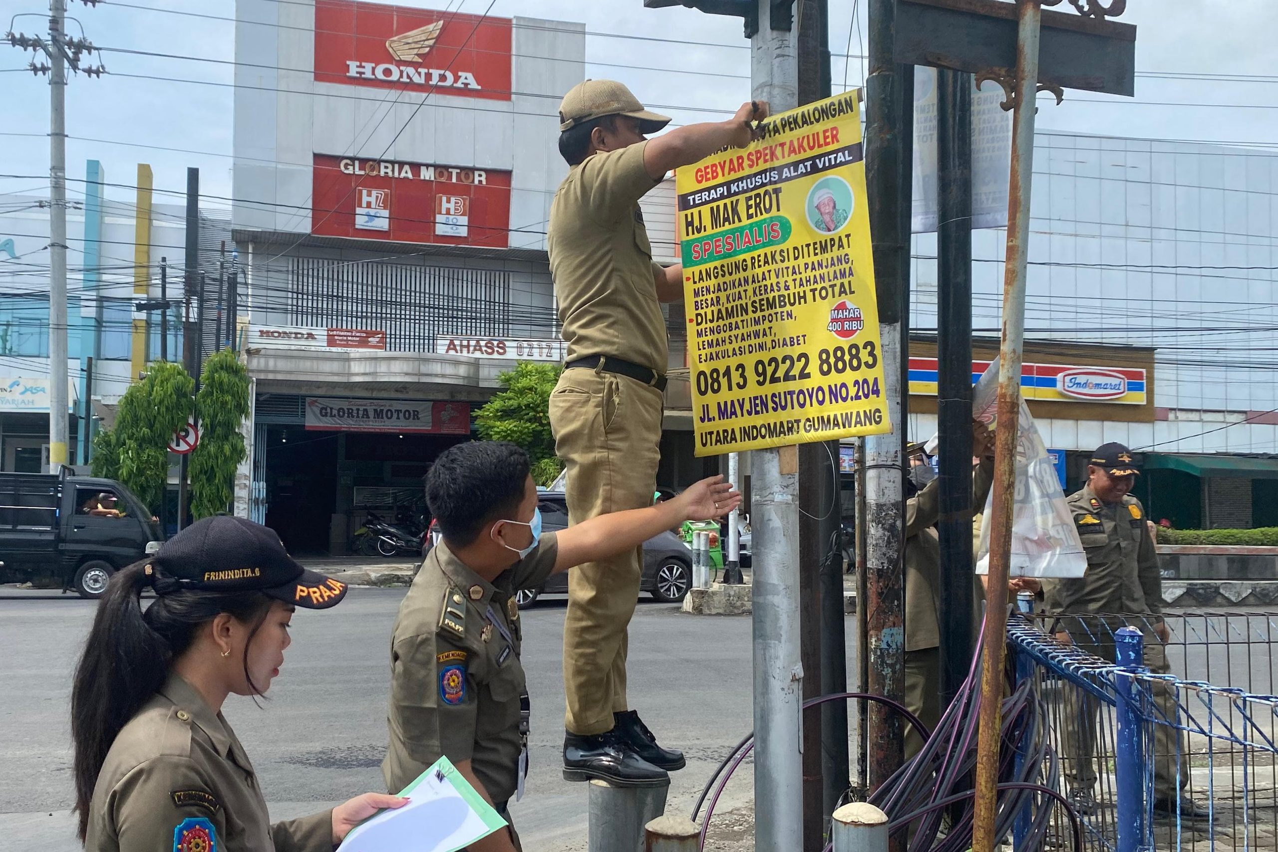Menganggu Jalan Sejumlah Reklame Liar Ditertibkan Satpol PP Pemalang