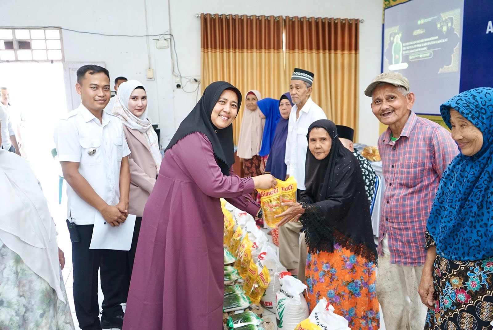 Ketua Tim Penggerak PKK Kabupaten Langkat, Ny Hj Endang Kurniasih Syah Afandin, memimpin langsung penyaluran bantuan itu, Rabu (25/2/2026). Tiga kecamatan menjadi titik distribusi, Kecamatan Stabat, Kecamatan Secanggang, dan Kecamatan Wampu.