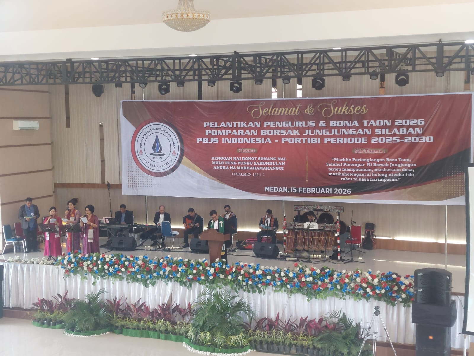INformasinasional.com, Medan -:Rangkaian Musyawarah Luar Biasa (Mubes) pertama (I) di Medan Sumatera Utara. Pomparan (keturunan) Borsak Jungjungan Silaban Indonesia-Sedunia (PBJSIP).Luar biasa,Bona Taon dan pelantikan pengurus PBJSIP periode 2025-2030 dihadiri Tulang Tuan Situmorang dengan Tulang Toga Sinaga dengan simbol tradisi adat Batak, Medan (15/2/26).