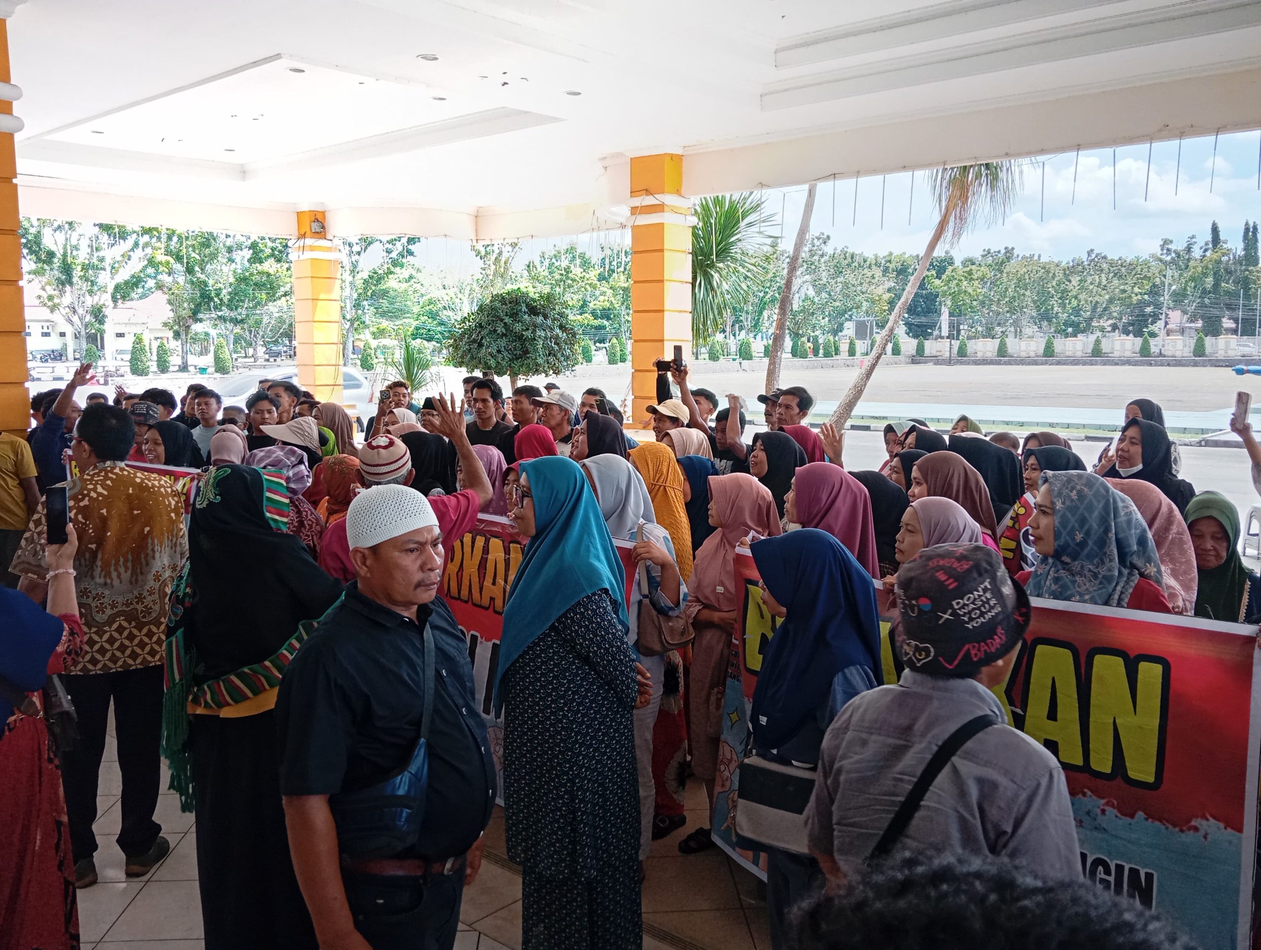 Puluhan  masyarakat Jorong  Mandiangin juga melakukan orasi di teras kantor Bupati Pasaman Barat.