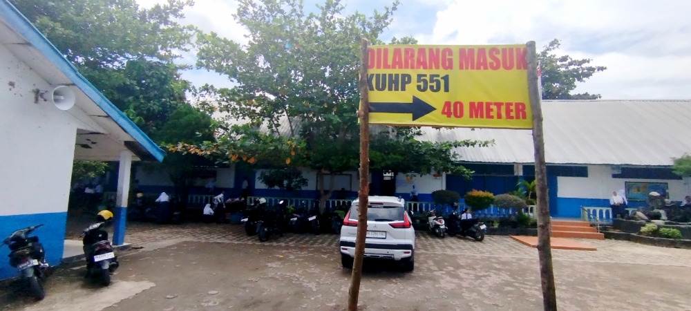 Pantauan di lokasi sekolah, saat ini telah terpajang plank berukuran 1 meter dengan ketinggian 2 meter bertuliskan Dilarang Masuk, KUHP 551 40 Meter.
