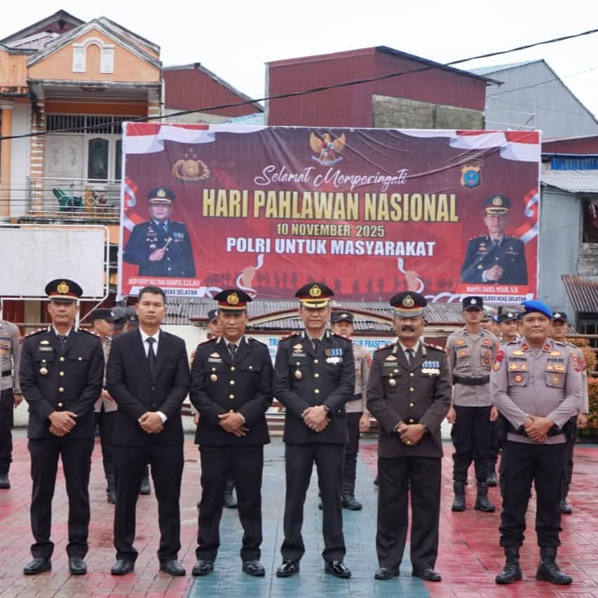 Upacara memperingati Hari Pahlawan ke-80 Tahun 2025, Polres Nias Selatan, menggelar upacara bendera merah putih dihalaman Mapolres Nias Selatan, Senin (10/11/2025).