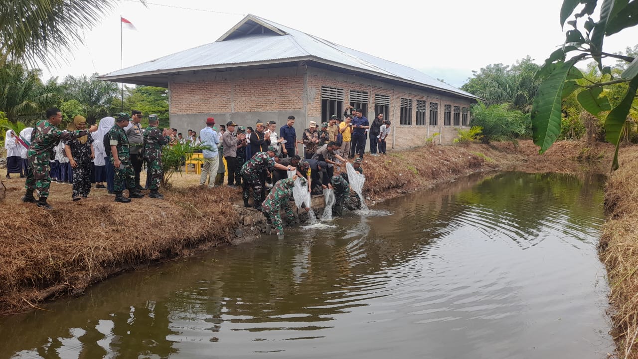 INformasinasional.com-Pasaman Barat–Mendukung ketahanan pangan di daerah terpinggir, ribuan bibit ikan nila dan ratusan pokok buah-buahan dibagikan kepada masyarakat di Jorong Mandiangin, Nagari Katiagan Kabupaten Pasaman Barat, Kamis (16/10/ 2025). Kegiatan tersebut bagian dari rangkaian TNI Manunggal Membangun Desa atau TMMD ke 126 Kodim 0305 Pasaman.