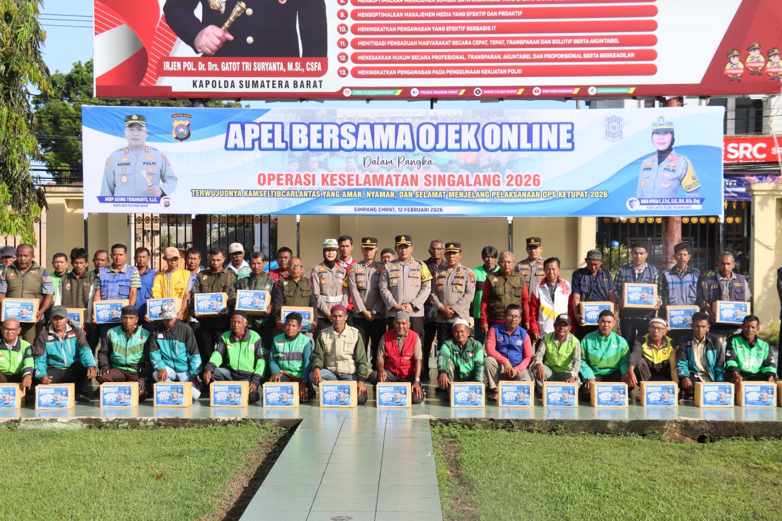 INformasinasional.com-Pasaman Barat–Polres Pasaman Barat, Sumatera Barat, menggelar Apel Bersama Pengemudi Ojek Online di halaman Mako Polres, Kamis (12/2/2026) pagi. Kegiatan ini merupakan bagian dari pelaksanaan Operasi Keselamatan Singgalang 2026.